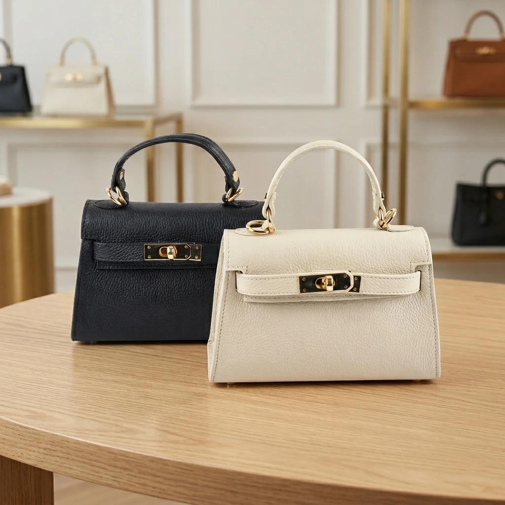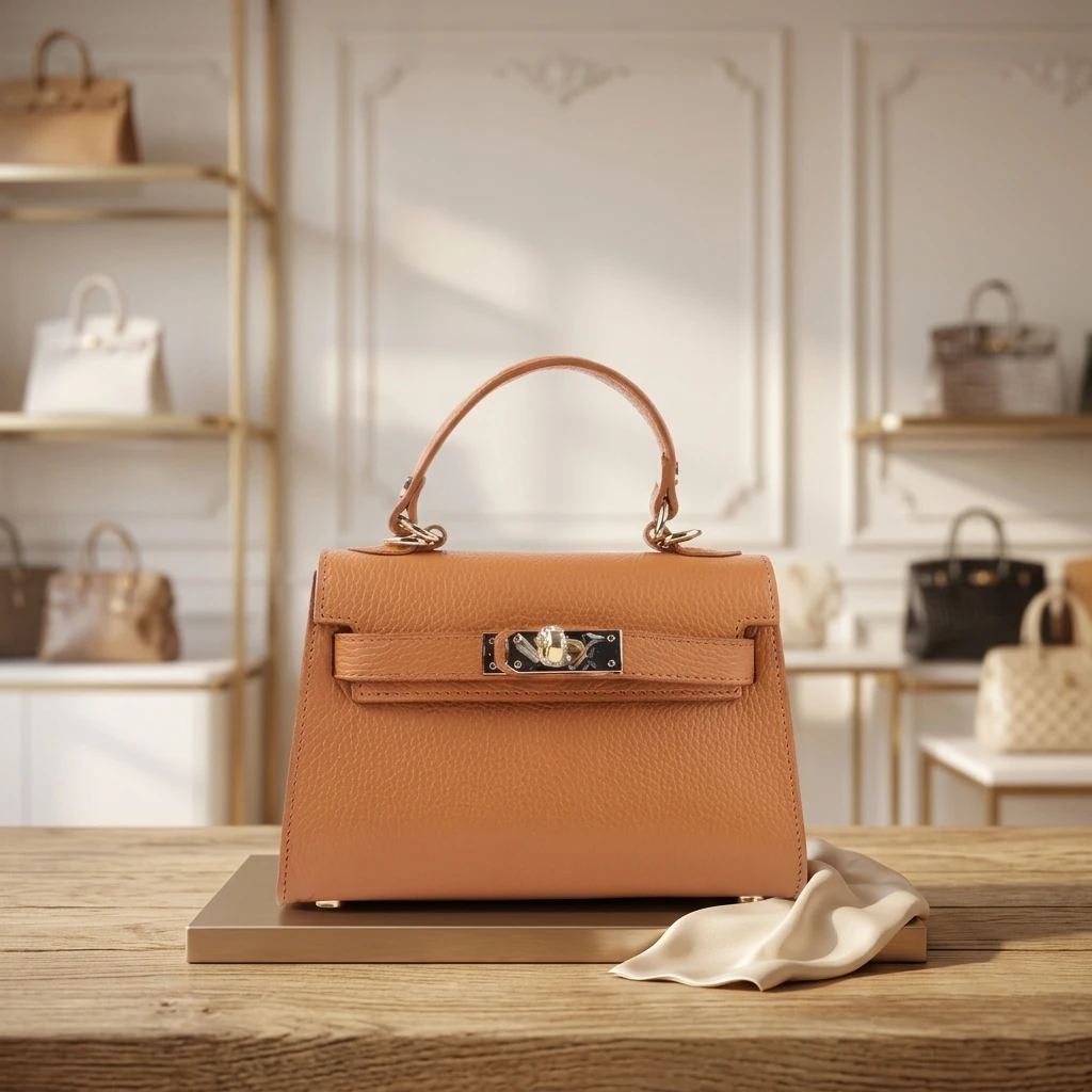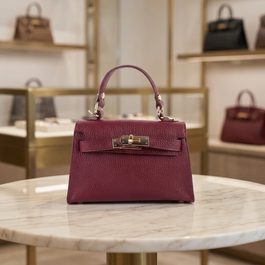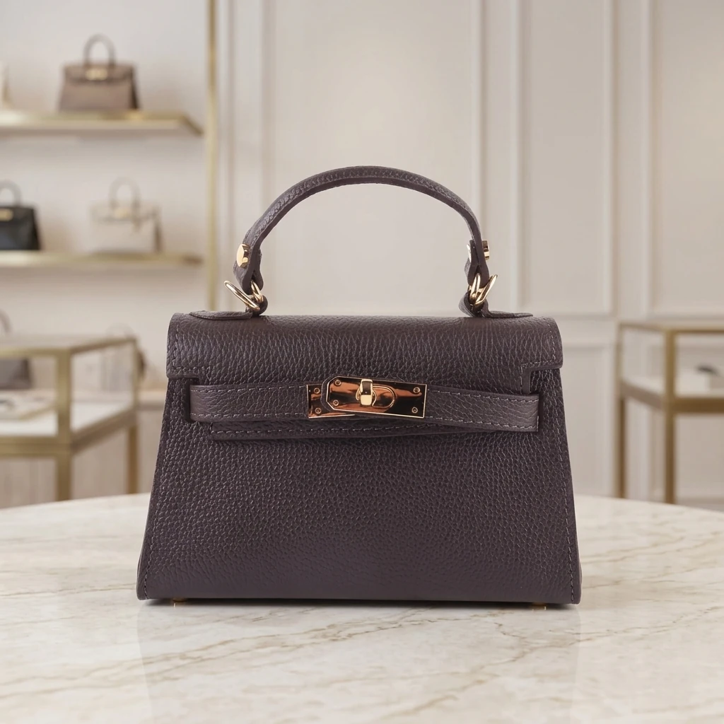 Klassiek Grof Lychee Leren Handtas een Tijdloos Italiaans Design<